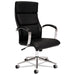 Black leather upholstery offers luxurious comfort and style. Comfortable padded leather-wrapped armrests. Contemporary polished aluminum five-star base with casters. Recommended Applications: Executive & Management; Seat Color: Black; Back Color: Black; Color Family: Black.