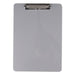 Heavy-duty, weather-resistant aluminum clipboard features a smooth writing surface with rounded corners and edges. Low-profile safety clip eliminates the possibility of accidental openings, while making the clipboard easier to store in briefcases, file cabinets, laptop bags and more. Sized to accommodate standard, letter-sized documents. Holds Paper Size: 8.5 x 11; Clipboard Actual Size: 9w x 12.5h; Clipboard Material: Aluminum; Clip Capacity: 0.5".