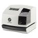 Designed to provide timekeeping records in 18 different preset print formats. It can print records in four different languages and can be configured to print times and years in various formats. The 100E makes use of SmartClock technology to keep a perpetual calendar and settings during power outages and has a five-year memory backup. It can accept standard time and job cards or print on paper. Time Clock Type: Electronic; Number of Employees: Unlimited; Imprint Style: Hour; Minute; Month; Minute Increments: Decimal Hundredths.