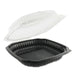 Culinary Classics® can withstand temperatures up to 230°F when used under heat lamps, in warming units and microwaves. The clear lid is designed using anti-fog technology with a vented design that allows steam to dissipate. It helps keeps fried foods crisp and offers clear visibility of items to ensure order accuracy. Food Container Type: Container/Lid Combo; Material(s): Polypropylene; Capacity (Volume): 47.5 oz; Color(s): Clear/Black.