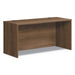 Straightforward styling blends with any office design. To create a U-workstation, order a bridge and non-handed desk shell. Storage pedestals must be ordered separately. Scratch-, spill- and stain-resistant laminate stands up to heavy use. Color: Pinnacle; Color Family: Walnut; Top Shape: Rectangular; Top Material: Laminate.