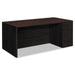 A modular management solution that combines stylish profiles and elegant accents with top-grade fit and finish. Abrasion- and stain-resistant high-pressure laminate with elegant hardwood trim. Drawers ride on steel ball bearing suspensions; file drawer extends fully and accommodates letter and legal size hanging files, box drawers extend three-quarters. HON® “One Key" core removable locks make re-keying quick and easy. 10-1/2" conference overhang provides added kneespace for guests. Full-height modesty panel for privacy. Convenient cable management with two worksurface grommets. Color: Mahogany; Color Family: Mahogany; Pedestal Count: 1; Top Shape: Rectangular.