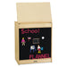 Choice of Green Chalkboard, Write-n-Wipe, Magnetic Write-n-Wipe or Flannel-front. Storage space under easel when folded down. Vertical Big Book partitions in back. Caster-mounted. Overall height: 43 inches. Flannel Easel. Color: Flannel; Overall Width: 24.5"; Overall Depth: 15"; Overall Height: 20".