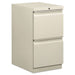 Heavy-duty pedestals with radius pulls to complement Brigade™ 800 Series Lateral Files. High sides for front-to-back letter size filing. Ball bearing suspensions on file drawer (90% extension) and box drawer (75%) extension. HON® "One Key" interchangeable lock core. Counterweight inhibits tipping when opening more than one drawer. Fixed front casters; swivel back casters. Fits under 29 1/2" high worksurfaces. File/File. Color: Light Gray; Color Family: Gray; Overall Width: 15"; Overall Depth: 19.88".