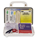 Keep it together with Pac-Kit®. Compact system contains exactly what you need to treat just about any common workplace injury. Neatly ordered interior compartment makes it easy to find what you need, especially when you're in a hurry. Weatherproof case protects contents from contamination. Comfortable carry-handle features convenient, pre-drilled holes for wall or door mounting. Complete kit is ANSI Z308.1-2009 compliant. ANSI Plus #10—English/Spanish contents-locator label on inside surface of lid. System Capacity: 10 Person System; Number of Pieces: 76; Contains: Adhesive Bandages; Adhesive Tape; Antiseptic Wipes; Eye Flush with Eye Pads & Strips; First Aid/Burn Cream; First Aid Guide; Forceps; Gauze Bandage; Large Wound Pad; Nitrile Exam Gloves; Scissors; Sterile Gauze Pads; Triangular Bandage; Triple Antibiotic Ointment; Mounting: Handheld; Wall.