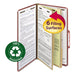 100% Recycled Pressboard Classification Folders, 2 Dividers, Legal Size, Red, 10/Box