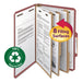 100% Recycled Pressboard Classification Folders, 3 Dividers, Legal Size, Red, 10/Box