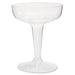 This elegant crystal-clear stemware looks just like glass. The simple, two-piece construction allows you to stack the pieces separately, conserving storage space. This stemware provides the beautiful presentation of glass in a sturdy, plastic form. They are also conveniently disposable. Cup Type: Cold; Capacity (Volume): 4 oz; Material(s): Plastic; Color(s): Clear.