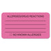 Allergy Warning Labels, ALLERGIES/DRUG REACTIONS NO KNOWN ALLERGIES, 1.75 x 3.25, Pink, 250/Roll