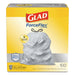 These Glad® Trash Bags are thick, strong, and odor eliminating. Ideal for your busiest, toughest kitchen or seasonal cleaning. These Glad garbage bags offer our highest protection in LeakGuard®, RipGuard®, ForceFlex® and OdorShield® technology providing a trash bag that protects against any kitchen disaster. The three-ply drawstring securely grips to the trash can, keeping the garbage bag in place until it's full and ready for removal. The outer layer is equipped with LeakGuard® for added leak protection, while the inner layer stretches to prevents rips and tears with the trusted stretchable strength of Glad's ForceFlex® technology. These trash bags use OdorShield® technology to block the strongest odors for up to seven days. When it's time to take the trash out, Glad kitchen trash bags are designed to withstand your toughest and messiest garbage with RipGuard® protection. Just a quick cinch of the durable drawstring makes for a simple removal and easy carrying of your trash. Application: Can Liner; Capacity Range (Volume) [Max]: 13 gal; Thickness: 0.72 mil; Grade: Super Heavy-Duty.