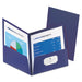Durable, professional and hardworking. Hold double the capacity of a standard twin-pocket folder. Each pocket has a 100-sheet capacity, allowing you to corral large projects and stay organized for large presentations. Add a touch of professionalism with our die-cut business card holder conveniently located on the inside pocket. Twin-pocket folder also features a unique, honeycomb texture on acid-free paper stock enhancing your presentation and preventing documents from yellowing over time. Front Cover Color(s): Dark Blue; Color Family: Blue; Back Cover Color(s): Dark Blue; Sheet Size: 11 x 8 1/2.