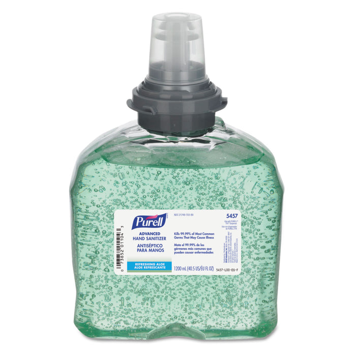 Show you care about the well-being of your team and visitors with PURELL Advanced Hand Sanitizer Soothing Gel for the workplace with aloe and vitamin E. It is proven to kill 99.99% of most common germs without damaging skin. Gel Hand Sanitizer Refill—Contains aloe. Hand Sanitizers Type: Gel; Color(s): Clear; For Use With: PURELL® 2720-12; Capacity (Volume): 1200 mL.