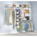 Make the most of your closet space with the adjustable and customizable Rubbermaid Configurations® closet kit perfect for walk-in or reach-in closets. All mounting hardware included for easy installation. No cutting required. Maximize your storage space by adding Configurations® accessories. For larger closets simply pick up extra configurations kits which work seamlessly together. Starter Kit—Fits any walk-in or reach-in closet with at least one wall 48" to 96" wide. Telescoping rods and expanding shelves adjust to add 14 ft of shelving space and 12 ft of hanging space. Color: Titanium; Overall Width: 48" to 96"; Overall Depth: 16"; Overall Height: 47.5".