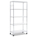 5-Shelf Wire Shelving Kit with Casters and Shelf Liners, 36w x 18d x 72h, Silver