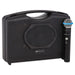 A complete presentation system built into a rugged, compact carrying case. Reach up to 1,000 people outdoors or in rooms up to 10,000 square feet. Using Bluetooth wireless technology, stream audio wirelessly from your smartphone, tablet, or any other Bluetooth® enabled device. Includes built-in 16-channel UHF wireless receiver and handheld wireless microphone with built-in transmitter. By adding a second Wireless Mic Kit (sold separately) two presenters can be wireless simultaneously with the freedom to roam within a 300 ft. radius. Powered by ten D-cell batteries for up to 200 hours of talk time or choose optional rechargeable NiCad battery pack (requires S1460). Mic Input Types: Condenser; Dynamic; Wireless; Number of Mic Inputs: 3; Speaker Type: 6" x 8" Jensen Speaker; Number of Speakers: 1.