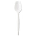 Affordably priced, utensils provide an excellent value. Individual wrapping ensures contaminant-free dispensing. Break-resistant plastic. Mediumweight. Utensils Type: Spork; Material(s): Plastic; Color(s): White; Grade: Mediumweight.