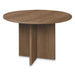 The 48" diameter complete table comfortably seats up to five people. The base has adjustable leveling glides to compensate for uneven floors. Table top and base are packaged together for convenient installation. Scratch-, spill- and stain-resistant laminate stands up to heavy use. Leveling glides help with uneven floors. Top Color: Pinnacle; Color Family: Walnut; Base Color: Pinnacle; Top Shape: Round.