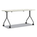 Selection of mobile and nesting tables to support meetings and collaborative work. Base flips the worksurface vertically to nest with other tables to save space. Table and base are bundled together. Scratch-, spill- and stain-resistant laminate stands up to heavy use. Rectangle worksurface gives up to four people space to collaborate. Order one SKU, get both. Top Color: Silver Mesh/Loft; Color Family: Gray; Base Color: Black; Top Shape: Rectangular.
